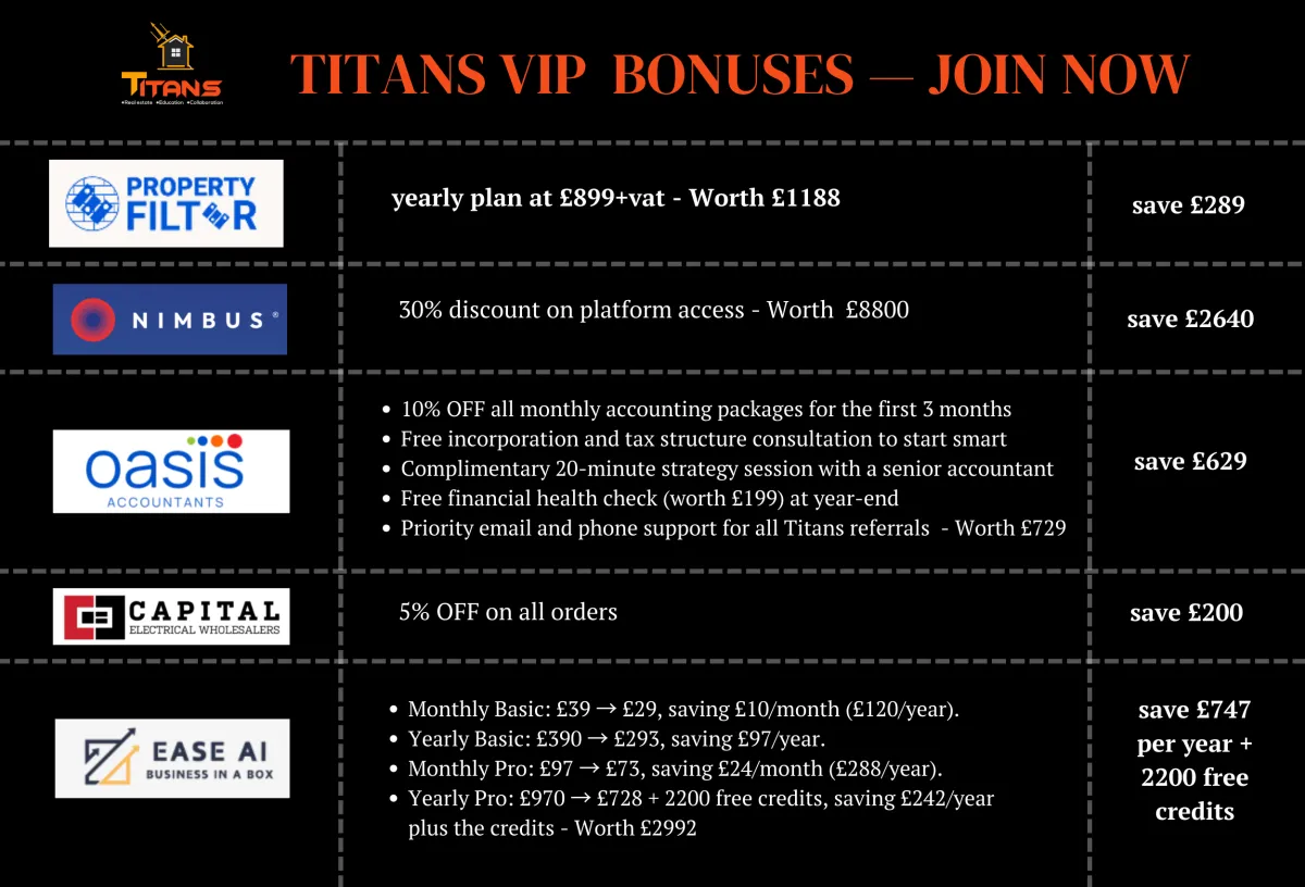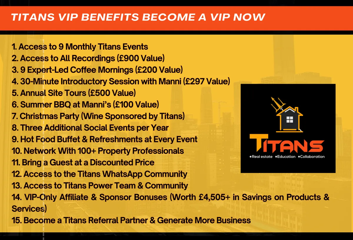 A key aspect of your property business is your network. As they say, your "network is your networth". Build strong relationships with the best in the business. Meet estate agents, investors, business partners, architects, developers, investors & more!